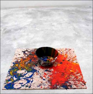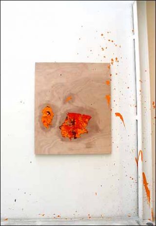 Jimmie Durham prolonge cette expérience à travers deux pièces réalisées en 2004 à l’occasion d’une performance exécutée lors de sa dernière exposition chez Michel Rein. Durham jette littéralement la peinture dans un geste débarrassé de tout affect et de toute prétention sur le discours. Il reste une attitude, nerveuse, physique à l’image de celle de West, comme un manifeste pour une matière en déliquescence.
