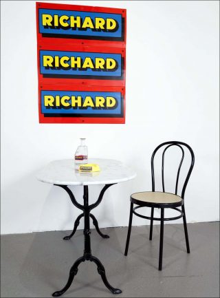 Ailleurs, des objets publicitaires créés dans les années 1970 par Richard Hamilton cohabitent avec des sérigraphies pop de Thomas Bayrle de la même époque et des peintures réalisées sur miroir par Daniel Schlier et Richard Fauguet. Partout se lit l’intérêt de ce dernier pour l’art populaire sous toutes ses formes.