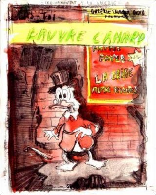 L’emblème actuel de l’artiste belge? Le plus grand «gripsou» qui ait jamais bercé notre enfance avec ses grimaces et ses vices à peine cachés de capitaliste affirmé, je nomme: Balthasar Picsou.