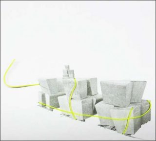 De cette coexistence entre l’éphémère et le durable, entre l’émergence et la disparition, entre le neuf et le fossile propre au territoire urbain contemporain, elle fait ma matière première. Elle s’attache à démembrer les paysages urbanisés en une constellation fragmentée de signes, de rythmes et de mouvements des corps. Ses personnages, quand il y en a, sont toujours neutres – à la limite de la dépersonnalisation – et se meuvent à travers un décor ni hostile ni bienveillant, souvent alambiqué, composé par un coup de crayon à la fois précis et nerveux.