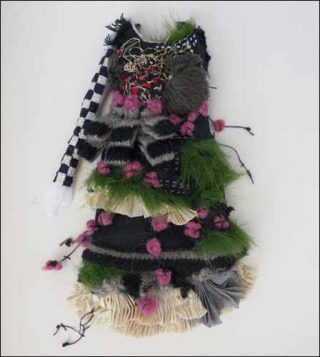 Catherine Noury. Elle provient parfois de mes anciens habits qui ainsi, retrouvent une seconde vie. Je dépiaute depuis au moins quatre ans un vieux cardigan rose. Je l’épluche, fabrique des guirlandes avec ses peluches… J’utilise aussi du papier japonais que je plisse, froisse, déchire, brode, ou bien encore de la filasse de plombier, que j’intègre sous forme de « boulettes-cocons » à l’intérieur des robes… Je peux broder durant des heures, et aussi coudre pendant des jours et des jours. J’aime étirer le temps, mais la partie de la robe qui en aura nécessité le plus, ne sera pas forcément apparente. Il m’est déjà arrivé de broder des ornementations, puis tout à coup, de retourner le tissu pour au bout du compte, les dissimuler. C’est invisible, mais c’est là …