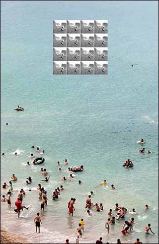 Puis elle a juxtaposé ces clichés colorés à des images d’actualité en noir et blanc, extraites de la presse écrite contemporaine. Les polyptiques qui en résultent se présentent comme des sortes de séquences rêvées qui décrivent un univers intimiste et onirique.