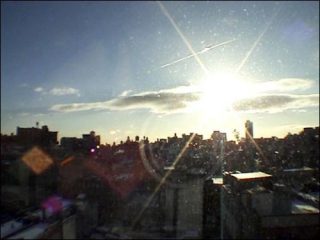 Dans la troisième salle, deux projections se font face. L’une, Morning View d’Armelle Aulestia, est un court film de contemplation, à travers la baie vitrée d’un gratte-ciel new-yorkais, d’un lever de soleil. La lumière joue avec les nuages et les éclats du verre. Le diptyque vidéo de Chen Yang intitulé Voyage montre également le ciel, mais vu en contre-plongée avec une fleur de pissenlit au premier plan. Comme dans un livre ouvert, l’image de droite montre la main de l’artiste essayant de dessiner cette fleur au crayon sur papier, aussi vite que le vent qui, à droite, disperse les graines.
