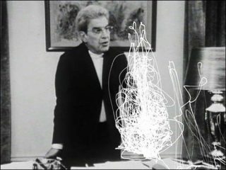 Dans les œuvres de la série En suivant la main droite de, une des séries les plus anciennes de l’artiste, démarrée en 1999 et qu’il continue à faire évoluer, des personnalités célèbres comme Sofia Loren ou Jacques Lacan sont transformées en peintres abstraits. Pierre Bismuth ajoute une couche à des séquences filmées dont ils sont les protagonistes en suivant le mouvement de leur main. Au final, le dessin semble toujours avoir attendu d’être mis à jour, comme si Pierre Bismuth avait décelé que le film était incomplet. Le film original s’efface au fur et à mesure et, au lieu de rester un objet de contemplation passif, celui-ci se transforme en machine à dessiner, nous faisant entrevoir l’immensité du potentiel cinématographique encore à explorer.