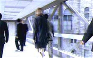 Time and Tide est une projection vidéo d’images fixes venant de la télévision. Un homme marche sur un désert de glace, un autre gît sur une plage. On ne peut dire si tel paysage, tel visage proviennent du documentaire ou de la fiction. Time and Tide (Temps et Courant, 2002). Chaque image reste sur le mur plus de trois secondes. Mais, dans ce montage de temps réguliers en fondu enchaîné, apparaissent des moments qui peuvent s’étendre sur plusieurs plans. Un halo de feux de voiture dans la nuit est suivi d’une nuée blanche comme ligne d’horizon qui est peut-être une vague d’écume. Les images sont emportées dans un récit par un courant. Un récit qui parle d’images qu’on ne voit plus à force de les voir. Et qui pose la question du comment voir, des enjeux de ce comment.