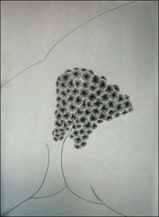 C’est depuis peu que j’associe le dessin et la photographie. Je fabrique mes images photographiques en façonnant les corps, en les modelant comme je le fais avec le dessin, je leur donne du relief. Même si la photographie suggère une distance avec le modèle, je cherche toujours à me rapprocher des corps, à les construire, je m’implique physiquement dans l’image. J’aime l’idée de sculpture des corps, je trouve finalement que j’en suis assez proche. Dans ce travail en deux temps, il y a d’un côté l’épreuve photographique et de l’autre le plaisir du trait, son obsession, la prise de risque qui peut provoquer l’accident. Les sillons que je trace sont comme des lignes de vie. Je dessine à main levée. J’accepte cette perte de la maîtrise.