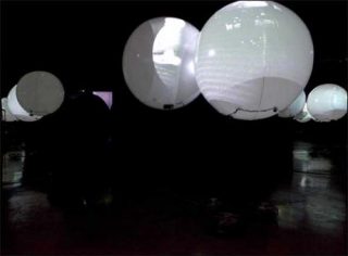 Des images se projettent dessus et le visiteur, à sa grande surprise, voit sa propre image parfois sur les ballons. Des caméras sont fixées sur les ballons et filment l’environnement, soit les murs et les reflets dans les miroirs, visiteurs y compris, et les images sont projetées par quatre vidéoprojecteurs en direction des ballons. Régulièrement, le son parasite l’image qui se met à grésiller avant de se rétablir.