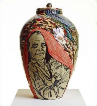 Enfin, dans les années 1990, la céramique devient un outil de critique sociale et politique: les travaux de Ai WeiWei, de Ni Haifeng ou encore de l’artiste iranienne Bita Fayyazi abordent des questions liées à l’authenticité, au pouvoir et au post-colonialisme. Outre cette association à l’histoire de la sculpture, l’exposition met également en relation l’utilisation de la céramique par les artistes pour questionner le medium de la peinture ou encore son introduction dans la performance et la vidéo.