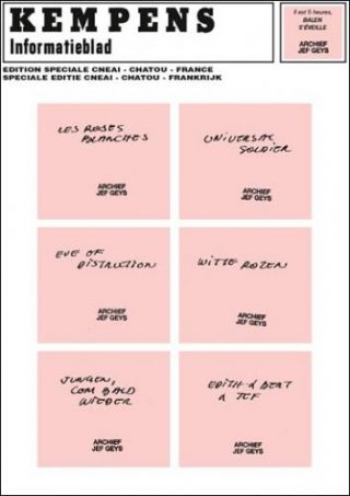 Faisant suite à l’exposition KOME (mai-juillet 2012) le Cneai invite de nouveau Jef Geys à réaliser un projet qui se décline en plusieurs formats. Les productions, éditions, workshops vont révéler la dimension polymorphe du travail de cet artiste devenu une référence pour de nombreux artistes contemporains. Les différentes activations permettront de découvrir le corpus sonore, photographique, télévisuel et numérique de sa démarche (tel que l’usage du scan dans l’archivage de pratiques quotidiennes).