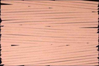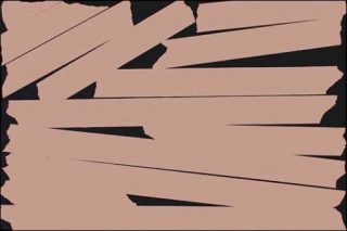 L’usage de la couleur, la forme arrondie des extrémités des bandes de scotch perturbent pourtant le dispositif et engagent la perception dans un processus de projection qui confère à ces tableaux des significations plus concrètes. Parmi eux, ceux dont l’organisation des bandes n’est pas symétrique ou ordonnée, mais assemblée de manière plus aléatoire, évoquent des tranches de livres empilés dans une bibliothèque dérangée ou encore un texte caviardé. La couleur chair enclenche un quasi réflexe biologique de reconnaissance du corps, tandis que l’association d’idées créée avec le scotch, déchiré manuellement, transforme ces empreintes en pansements de fortune sur un corps en mue, blessé, avec lequel on peut presque compatir. Déchirés, pelés, voire accidentés, les tableaux-chair présentent des irrégularités de surface comme autant d’anomalies de peau. Dans cette grande salle à la hauteur conséquente, les œuvres apportent toutefois à l’espace une réelle sensualité, venant maquiller le volume de sa palette de fonds de teint, lui donner corps, littéralement l’incarner.