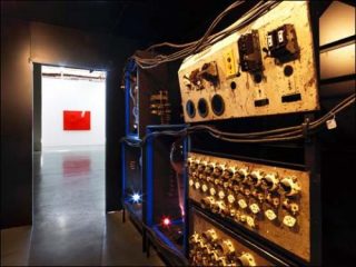 Si cette installation fait bien entendu écho aux livres de l’écrivain pragois, en mettant en branle une mécanique implacable où sont broyés les humains, elle n’en demeure pas moins étrangement archaïque à nos yeux. Des cadrans, des luminaires, des éclairages kaléidoscopiques, des boutons, des câbles, des interrupteurs, des rubans magnétiques… Tous ces éléments s’activent dans un brouhaha fracassant rendant l’atmosphère encore plus oppressante pour le spectateur. Ils apparaissent surtout comme les signaux de la modernité d’antan, machinique, bruyante, imposante, bien loin des nouveaux canons de la révolution numérique actuelle.