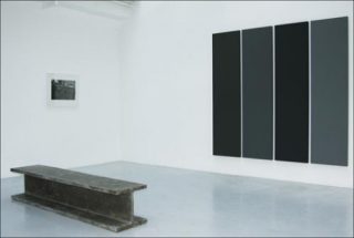 Simon Boudvin s’intéresse plus particulièrement aux formes déchues, non sans mélancolie. Il reconstitue ainsi une poutre du Seagram Building de New-York, construit en 1958 par Mies van der Rohe (Hem, 2008). Cet élément, extrait d’une architecture de l’homme du «Less is more» évoque en toute logique le minimalisme. L’œuvre a une réelle présence. Il s’agit bien d’une déconstruction de ce qui a été construit, d’un élément permettant une certaine solidité et devenant à la fois presque anecdotique: ne pourrait-il pas s’agir d’un banc où s’asseoir pour contempler les peintures d’Alan Charlton ou les photographies d’Ananias Léki Dago?