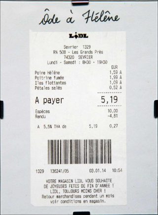 L’artiste dYmanche métamorphose un ticket de caisse de supermarché en une « Ode à Hélène ». L’installation Variations de Charlie Aubry, composée d’un ensemble improbable et désordonné d’objets, de machines et d’instruments de musique, distille une étrange mélodie inspirée de mystérieuses « partitions rythmiques pour objets ». Ces œuvres volontairement surprenantes entraînent les visiteurs dans une expérience qui renouvelle leurs approches habituelles du quotidien, qui les conduit au-delà de «l’apparente simplicité des choses», dans un espace infini d’inventions et d’inattendu.