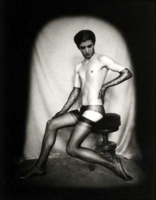 Ensuite, il s’agit de proposer de nouvelles représentations de soi et du corps masculin, principalement à travers le travestissement, le maquillage, l’évocation de l’homosexualité, du transgenre ou de l’éphèbe que ce soit avec Robert Mapplethorpe, ou les facétieux Douglas Gordon, Brice Dellsperger et Steven Cohen. Les exemples sont pléthores, depuis les scandaleuses photographies du pionnier Pierre Molinier travestissant ses modèles (ou lui-même) dans des mises en scène sadomasos sophistiquées, jusqu’aux déguisements de Michel Journiac illustrant les carcans sociaux dans lesquels on enferme les femmes (Vingt-quatre heures de la vie d’une femme ordinaire). Les modèles de Mapplethorpe apparaissent quant à eux comme le nouvel idéal masculin pour toute une génération d’artistes. On pense à Yan Xing ou à Pascal Lièvre qui rejouent et détournent les poses du Black Book. Au final, on aurait l’impression que la plupart d’entre eux ne s’est jamais vraiment remis de l’audace du photographe, désormais érigé au rang de nouvelle référence ou de maître indépassable des années 1980.