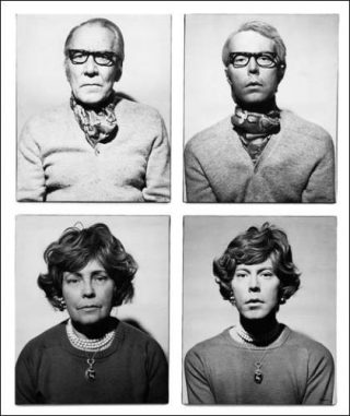 — Michel Journiac, Hommage à Freud, constat critique d’une mythologie travestie, 1972 – 1984. Installation photographique, ensemble de quatre tirages au gélatino-argentique sur toile, 250 x 200 cm, (110 x 90 cm chacun).