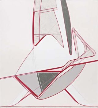 Les peintures de Franck Nitsche nous soumettent très vite aux tentations référentielles, celles de voir en ces surfaces lisses, ces lignes brisées en angles aigus par des déviations brutales, ces courbes parfaites tracées au compas, les vestiges d’un suprématisme ou d’un néoplasticisme d’un autre âge.