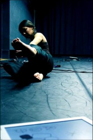 A l’ouverture des Rencontres chorégraphiques internationales de Seine-Saint-Denis, placées sous l’éclairage de l’expérience sensible, difficile de trouver chemin plus direct vers les différentes possibilités offertes par ce thème que le travail de Myriam Gourfink. Le temps passé face aux propositions scéniques de la chorégraphe est une immersion, l’acceptation d’un sens temporel différent, d’un espace parcouru de lignes de fuite et de tension intimement mêlées. Le travail de réalité appliqué au corps, l’extrême connaissance et la maîtrise virtuose tissent un état de corps troublant et enivrant.