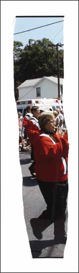 Instants suspendus : la fête nationale américaine du 4 juillet prend des allures de cacophonie silencieuse. Les morceaux d’instruments, de corps de musiciens tronqués ou parfois juste leurs ombres tiennent lieu de compte-rendu.