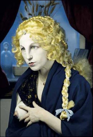 Un corps, un visage, d’une plasticité certes étonnante, qui se fondent et disparaissent derrière les travestissements. Mais quelque chose résiste, un substrat inquiétant. Ces personnages fictifs sont des produits incestueux, de la répétition et du conformisme. Une consanguinité qui dans la série «History Portraits» n’est pas sans rappeler malicieusement celle des familles royales.