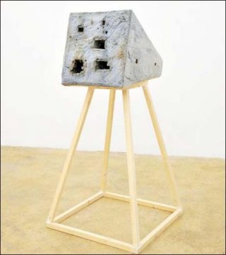 Manipuler une argile rendue anesthésiante sous l’effet d’une forte dose de lidocaïne. Le travail s’effectue à l’intérieur d’une boite offrant trois ouvertures. Deux suffisamment larges pour y passer les bras et une troisième plus étroite pour évacuer la terre. Les bras invisibles et anesthésiés, pataugent, malaxent, poussent l’argile sans en avoir aucune perception. L’expérience prend fin une fois que les bras retrouvent leurs sensations. La boite est ensuite remplie de plâtre afin de prendre l’empreinte du travail effectué au travers de ce qui peut être considéré comme un sommeil relatif (somnambulisme) ou une amputation chimique.