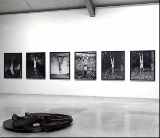 Le corps aussi est soumis à l’épreuve de la durée, comme dans la série «Erste Hängung» (1976), où l’on découvre l’artiste dénudé, suspendu par les pieds, telle une dépouille animale. Malgré la violence infligée à la chair, récurrente dans ses rituels macabres, la crudité de la scène résulte plus de qualités formelles que d’un effet de réalisme — contraste du noir et du blanc, variation de l’intensité lumineuse, rendu sculptural du corps —, contestant d’une certaine façon sa valeur de document.