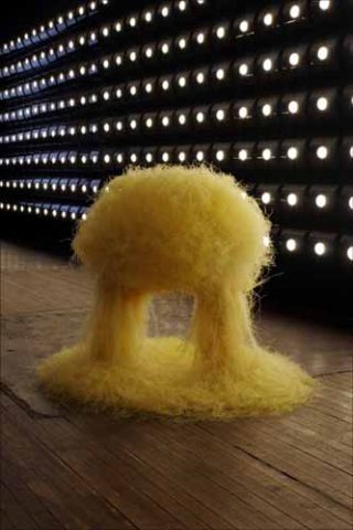 Points communs. On se demande alors ce qui réunit ici tous ces artistes. Patman 2 de Michel Blazy, nous donne peut-être un élément de réponse. Sa sculpture en fibre jaunie, est à mi-chemin entre le naturel et l’artificiel. Cette sphère «sur pattes» ressemble à un personnage sans tête. La démarche de Blazy consiste à révéler un processus. Ses œuvres évoluent et mettent en lumière une nature en mutation. Patman 2, être hybride, résume cet état transitoire, ce devenir en attente.