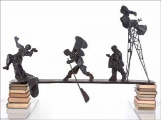 — William Kentridge, Bridge, 2001. Bronze and books. 60 x 93.2 x 19 cm.