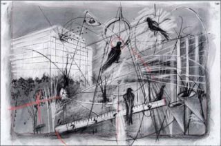 — William Kentridge, Drawing for the opera The Magic Flute, 2004–2005. Charcoal, pastel, and colored pencil on paper. 120 x 160 cm.