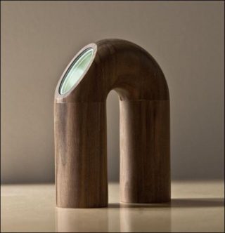 C’est ce double langage formel et fonctionnel qui caractérise d’ailleurs le mieux les deux designers. Leurs pièces ne révèlent pas d’emblée la fonction de l’objet. La forme vient d’abord, par le dessin, la fonction arrive ensuite. Les miroirs et la table basse sont ainsi le résultat de patient collage de formes, déplacement de lignes, de volumes et de surfaces pour aboutir à ces objets aussi plastiques que fonctionnels dont la table est emblématique: le cercle est ici manipulé sous toutes ses formes, extrudé, tordu… pour proposer une double fonction rangement et table. Tandis que le lampadaire à poser contre le mur est une petite créature qui cherche à percer les murs, parachevant une collection à l’humour retenu pour des objets étrangement habités et quotidiens.