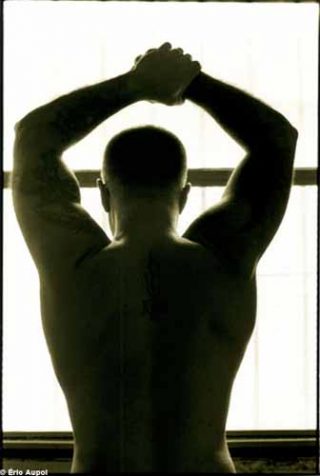 Thierry prend des poses de culturistes qui mettent en valeur ses muscles et ses tatouages. Il est vu de dos, de profil ou de face, mais son regard ne croise jamais l’objectif. Comme s’il refusait toute intériorité, toute affirmation de sa subjectivité.