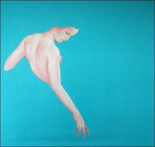 Le tableau au monochrome bleu révèle que cette couleur n’a pas la même consistance que le noir. Le bleu vif s’oppose moins que le noir au rosé de la peau. En jouant sur la complémentarité du rose et du bleu, Claude Como reste dans un traitement radical des couleurs, qui valorise le caractère séduisant du rose. Mais dans tous les cas, en ne gardant du portrait que la lumière de la chair et en l’enveloppant d’un monochrome, elle parvient à une esthétique épurée.
