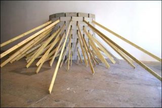 Faisant suite à une série de pièces regroupées sous le titre générique de Défense contre la galerie qu’il a commencé à réaliser en 2010, l’installation Cohorte s’inscrit en porte-à -faux dans l’espace au sein duquel elle est présentée. Le titre de l’oeuvre, issu d’un lexique militaire, fait entre autres référence à la stratégie des cohortes de l’armée romaine, formations tout autant défensives qu’offensives.