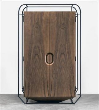 Avec sa collection «Exo», par référence à l’exosquelette, créée en exclusivité pour la galerie Gosserez, Grégoire de Lafforest donne le premier rôle aux éléments du meuble qui sont en général ou bien cachés, ou bien considérés comme secondaires.