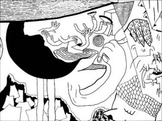Pour cette exposition, l’artiste parisien Shoboshobo a constitué une petite équipe de cinq autres artistes pour se joindre à lui: le Japonais Tetsunori Tawaraya dont l’univers graphique inquiétant et organique déborde d’énergie et de tensions; les américains de Sumi Ink Club (Luke Fishbeck et Sarah Anderson) passés maîtres dans l’art du recouvrement mural de myriades de dessins psychédéliques; le Français Hendrik Hegray au dessin torturé et à l’humour noir, et enfin le belge Dennis Tyfus, activiste reconnu de la scène noise et trublion graphique adepte du personnage mutant du dessin dans sa forme la plus tonitruante.