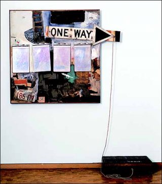 Dans les grandes pièces au mur de la même période, des lettres, des fragments de mots, éclatent çà et là comme autant d’injonctions indécidables (Kickback). Au début des années 60, alors que la peinture abstraite, sous l’impulsion de l’art minimal et de la radicalité d’un Art Reinhardt, tend à la séparation sans retour de l’art et la vie, les Combines de Rauschenberg s’ancrent au contraire, par la réappropriation et le réagencement de fragments d’histoire, dans des hypothèses narratives aussi ouvertes et complexes que la vie elle-même.