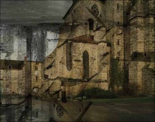 L’image porte en elle la confrontation et l’union puisque finalement le paysage se recrée et s’enrichit de son double : les arbres s’étoffent et les clochers se multiplient créant des architectures inouïes.