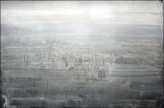 — Ida Tursic et Wilfried Mille, Fog, 2010. Huile et pigments d’argent sur toile. 200 x 300 x 5 cm