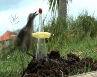 Cette réflexion se poursuit avec la vidéo The Party, projetée dans la seconde salle, réalisée par Michel Blazy en Martinique et qui consiste à observer le comportement des crabes et des oiseaux mis en présence de sculptures composées de fruits en boîte.