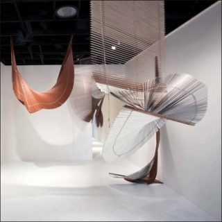L’installation Blinds de Martin Soto Climent, artiste né et vivant à Mexico, déploie dans l’espace plusieurs stores, qu’il a suspendus, tordus et retournés pour leur faire adopter d’élégants mouvements. Cette installation s’inscrit dans la démarche conceptuelle de l’artiste, habitué à remodeler et recontextualiser des objets du quotidien par des gestes minimaux.