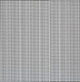 Conceptual Decoration prend corps. Les mots ne sont plus seulement des signes, des sons prononcés à la lecture des lignes inscrites sur les murs. Les bandes de tapisseries, uniques éléments de décor et la salle elle-même deviennent des objets palpables. Les murs se font porte-paroles. Ils incarnent ce que l’artiste qualifie de «décoration conceptuelle».