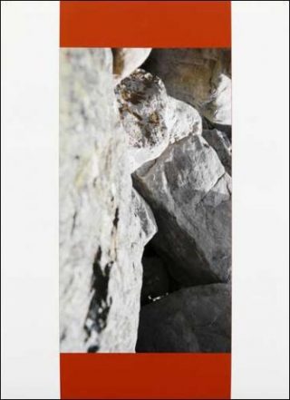 Retarder la désignation pour perdre le regard dans les méandres sensibles de la roche, telle est aussi la stratégie des photographies d’Helen Mirra. Tournées à 46° ses photos de pierres sont difficilement identifiables. S’agit-il d’une montagne, d’un ravin ou d’un volcan? On ne le saura pas.