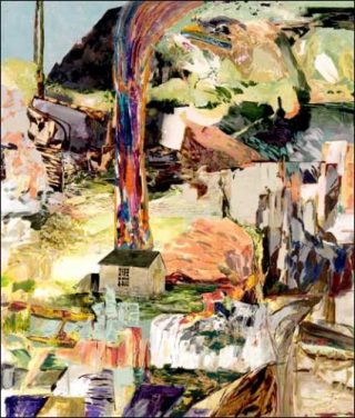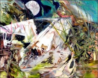 — Hernan Bas, The Thought flow (cabin at Walden), 2009. Acrylique, aérographe sur toile. 213 x 183 cm