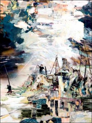 — Hernan Bas, The Signalmen, 2009. Acrylique, aérographe sur toile. 244 x 183cm