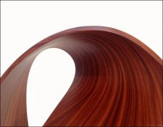 Cette console sculpturale est une boucle sans fin réalisée à partir d’une structure en fibre de carbone entièrement recouverte de palissandre de Santos. Inspirée par le ruban du mathématicien Möbius, le placage est jointé de telle manière que, sur la longueur totale du ruban, on ne puisse voir aucun joint car ils sont réalisés en suivant les veines du bois. L’ensemble donne l’impression que le meuble a était réalisé en une seule fois, comme si le bois avait pris la forme de la sculpture en se développant.