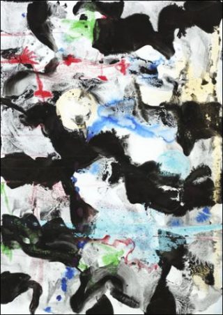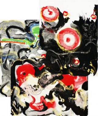 Catherine Lasnier tourne le dos à son expérience d’illustratrice pour nous proposer un espace sans narration qui s’apparente à des clichés d’une sortie de chaos. Dans un geste radical qui n’aborde plus les contours de la forme mais les flux qui la compose, elle se tourne vers la source du geste dans une peinture de travers(e) entre encre, dessin, aquarelle et collage. Circulant entre la matité des pigments et l’éclat de la poudre dorée l’œil est invité à se perdre dans les différentes échelles de ces Constellations. La puissance du rapport entre la masse et le vide y ordonne un souffle organique et souterrain.