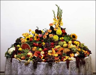 Le grand étalage de ces produits s’achève sur la présentation d’un immense panier de cocagne, sorte de pièce montée de la consommation, apanage de cette surenchère vers l’abondance qui connaît son pendant dans les pays victimes de pénuries alimentaires.