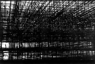 Métalopolis, construction du périphérique parisien, 1964. Avec une esthétique froide, proche de l’abstraction, inspirée d’Otto Steinert et de son livre Subjektive Fotografie, Gautrand propose une véritable poésie par l’image. Très graphique, cette série transforme en traits purs l’architecture de métal avec ses rails, ses poutrelles, ses échafaudages porteurs de villes futures.