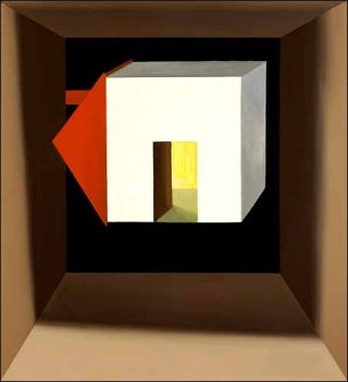 Mais ces jeux géométriques simples évoquent plus les arts graphiques que la peinture. L’absence de propos, comme la pauvreté des moyens, laisse le spectateur ivre de peinture, un peu sur sa faim. L’opus est pensé et réalisé dans une froideur calculée. Malgré l’utilisation de couleurs vives, l’ensemble laisse froid. Les toiles se parcourent d’un seul regard, en un clin d’œil ; elles n’offrent pas d’aspérités et ne provoquent pas le mystère. Tout est donné dès la première lecture : les rotations d’objets, les ombres portées, les changements de point de vue ne sont pas assez radicaux pour nous interpeller. Face à cette mécanique graphique, il manque un peu d’huile pour éviter les grincements et les évidences. L’huile de coude est présente, il faut juste désormais y rajouter un peu de peinture.