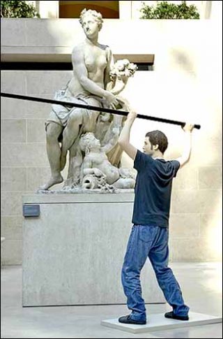 — Bump Piece, 2007. Résine. Vêtements. Perchman: 175 cm. Perche: 500 cm de long. Collection de l’artiste.