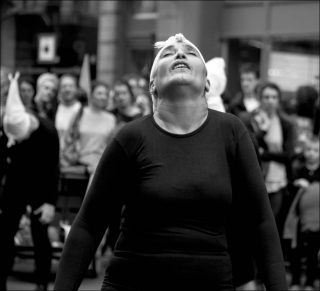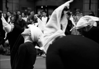 Corbeaux est née d’un désir de sortir du confort des salles de théâtre pour aller jouer directement dans les rues de Marrakech. A l’origine, Bouchra Ouizguen pense cette performance comme un projet éphémère créé dans l’urgence, pour plus de vérité. Elaborée donc, dans une rapidité extrême, la pièce réunit un nombre important de danseuses qui iront porter dans la rue un message d’universalité: elles crieront la nécessité d’être ensemble, les bienfaits du partage et du dialogue. Générateur de liberté, ce cri à l’unisson brisera les chaînes de l’oppression.
